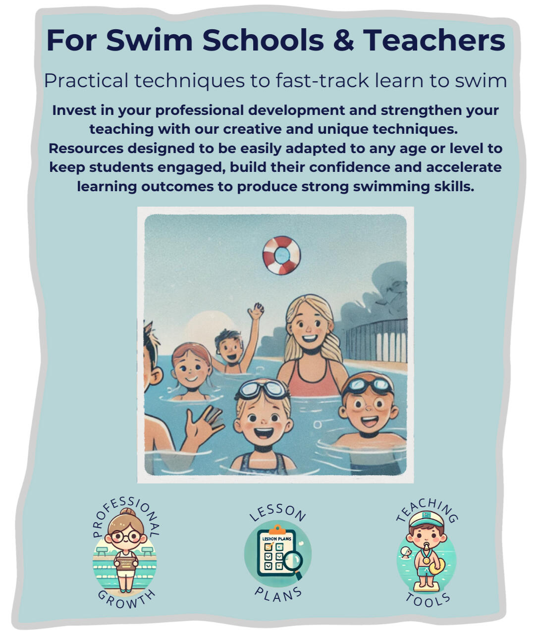 skills, techniques, and safety tips that make swimming a lifelong joy and a safer activity for every kid; regardless of age, ability or income!
