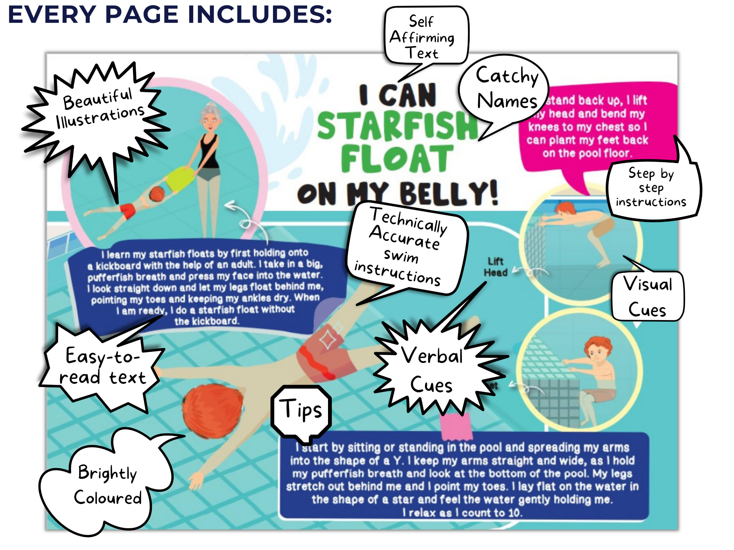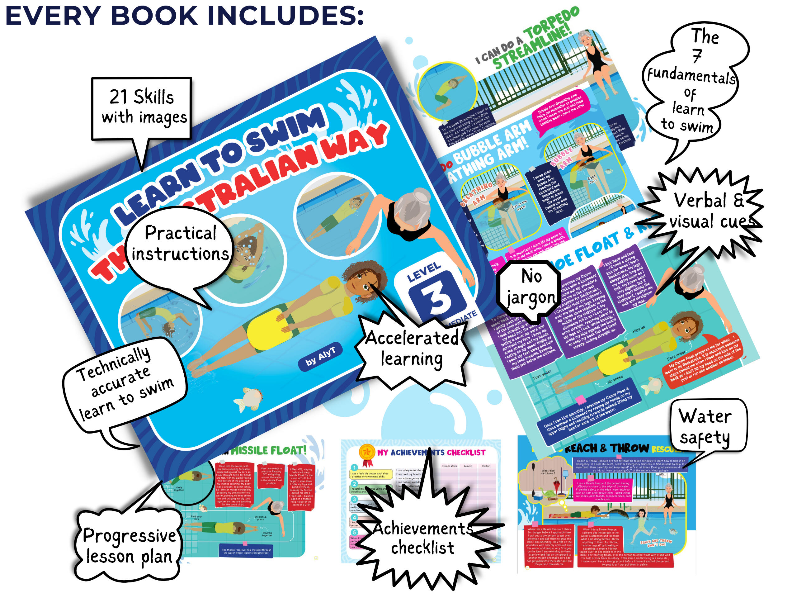 Our books are designed with you in mind—bright, colorful, and full of technically accurate swim guidance.We stand behind every page, and confident that not only will you find value in our books, but you’ll also want to read them over and over.So you can dive in with confidence—guaranteed!